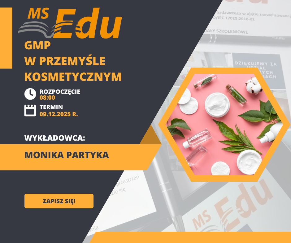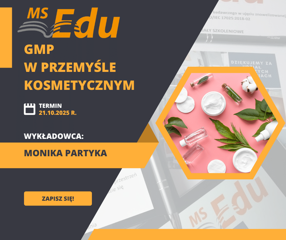 Co dla produkcji kosmetyków oznacza GMP? Wymagania, zasady, wdrożenie, szkolenie przypominające. Webinar 7,5h.